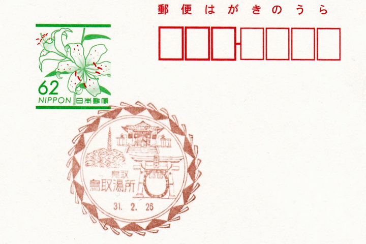 全国の風景印・小型印を収集して紹介!「鳥取湯所郵便局」しゃんしゃん傘と湯所神社、平和塔編。