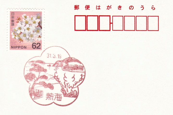 全国の風景印・小型印を収集して紹介!「熱海郵便局」大湯間欠泉と熱海サンビーチ編。