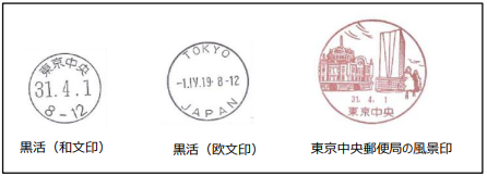 東京中央郵便局において、次のとおり、郵頼による押印を行います。