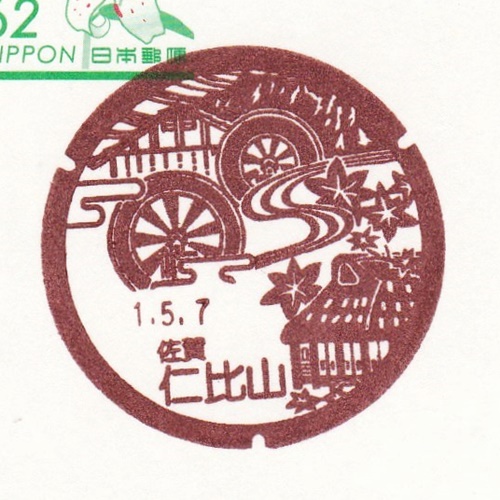 全国の風景印・小型印を収集して紹介!「仁比山郵便局」水車の里と九年庵編。