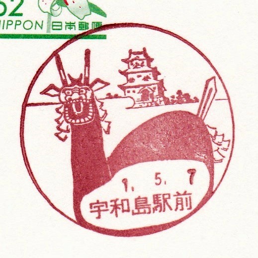 全国の風景印・小型印を収集して紹介!「宇和島駅前郵便局」宇和島城と牛気編。