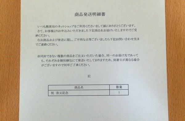 4月に郵便局のネットショップにて「祝 改元記念」フレーム切手を注文された方には、下記の内容のメールが送信されたと思います。