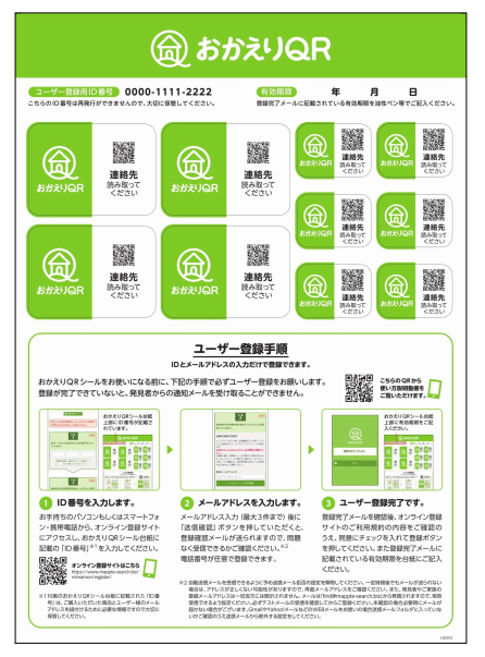 おかえりQRシールをお使いの前に、必ず下記の手順でユーザー登録を行ってください。