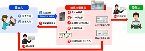 差し出された電子内容証明文書は受取人宛ての正本はもちろん、差出人宛ての謄本も自動で印刷・封入封かんし郵送されます。