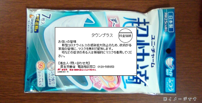 今後も国がマスクを配布する場合、たぶん日本郵便以外に一斉に市内全域に配布する方法はないのではないかと思いますし、それに伴うコスト的な面でも日本郵便のタウンプラスを利用する可能性が高いです。